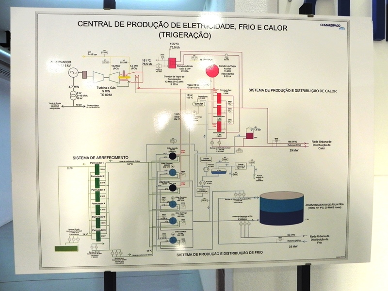 A partir desta central de trigeração de alta eficiência, localizada no extremo norte do Parque das Nações, a energia térmica é distribuída - sob a forma de água arrefecida e água aquecida - a toda a Zona de Intervenção da Expo’98.
